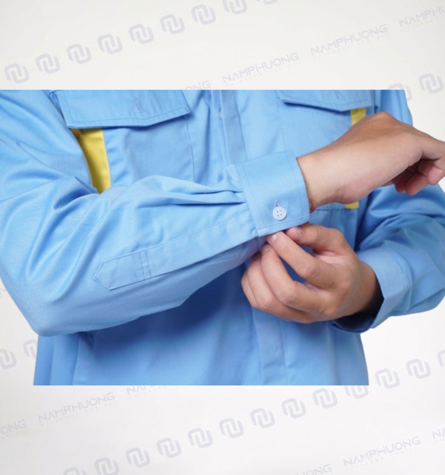 - Phần tay áo có bản bo cổ tay kèm cúc điều chỉnh, giúp ôm gọn khi làm việc với máy móc hoặc thao tác kỹ thuật.