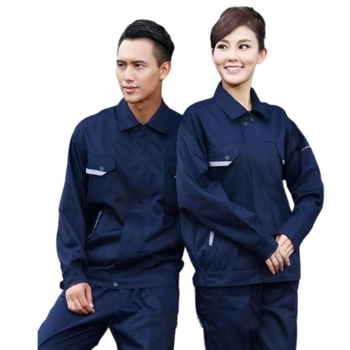 Màu xanh navy mang lại cảm giác chuyên nghiệp, đồng thời giúp hạn chế lộ vết bẩn trong quá trình làm việc. Chất liệu thường có độ bền cao, thoáng khí, phù hợp cho môi trường làm việc liên tục và cường độ lớn. Mẫu này được nhiều doanh nghiệp lựa chọn để xây dựng hình ảnh đồng bộ.
