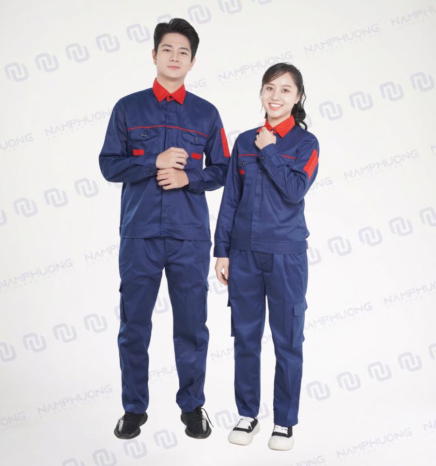 Đồng phục bảo hộ kỹ sư phối màu xanh navy đỏ [Mã DKS-09]