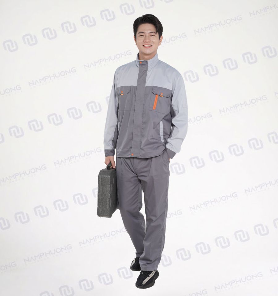 Đồng phục bảo hộ kỹ sư vải Kaki Pangrim phối màu ghi sáng ghi đậm [Mã DKS-10]