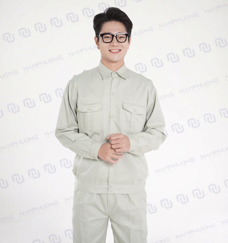 Đồng phục bảo hộ kỹ thuật vải Kaki chống bám bụi màu ghi sáng [Mã DKT-08]
