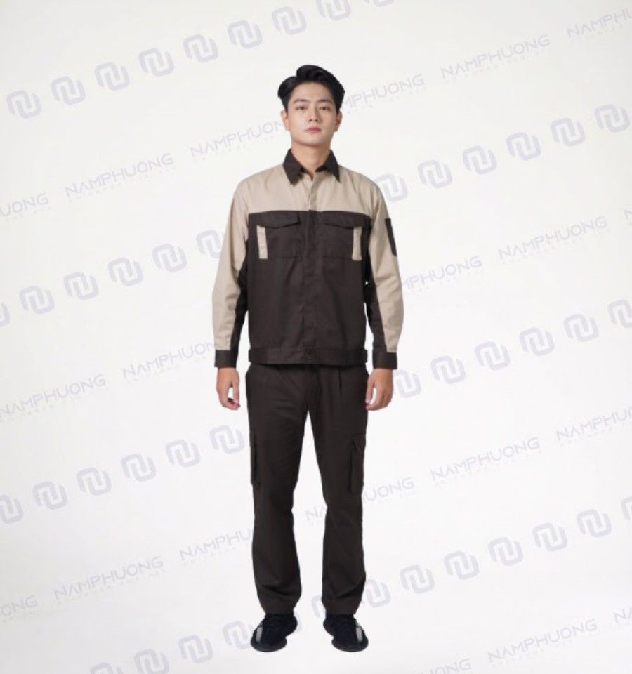 Mẫu đồng phục bảo hộ thợ hàn DTH-01 là lựa chọn chuyên nghiệp cho kỹ sư và công nhân công trình. Bộ quần áo được thiết kế phối màu nâu – be hiện đại, vải kaki bền chắc, form đứng dáng và hệ thống túi tiện dụng cho môi trường làm việc cường độ cao.