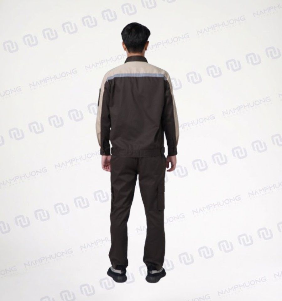 - Quần bảo hộ đồng màu nâu đậm, form suông vừa phải, đảm bảo thoải mái khi di chuyển, leo cầu thang hoặc ngồi thao tác kỹ thuật.